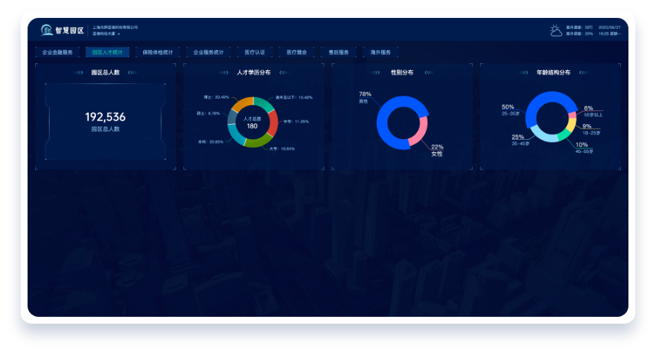 集合园区各类数据类别,进行统计分析,帮助园区运营者进行精准决策。